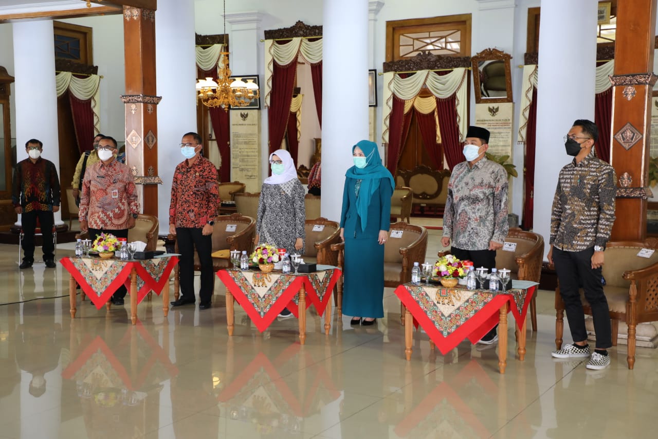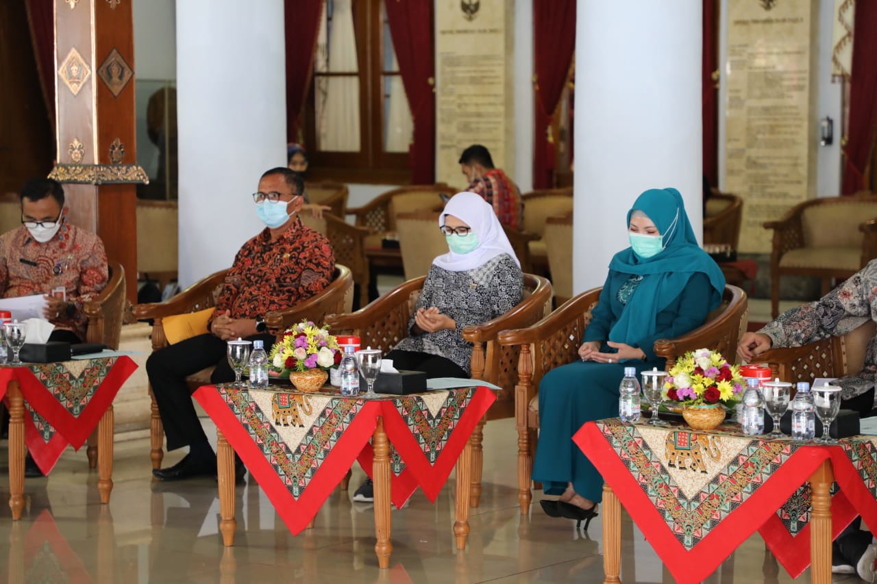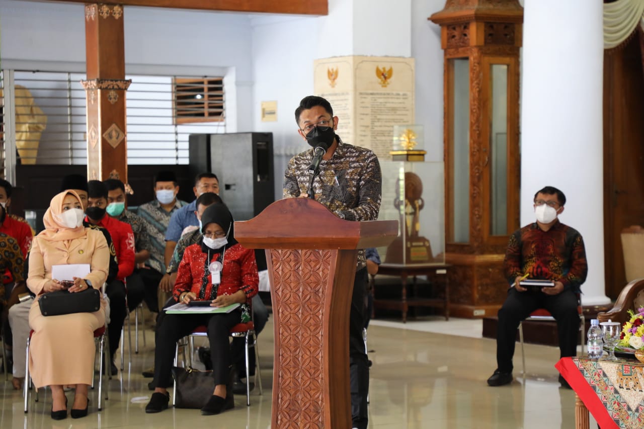 BLITAR KAB – Pemkab Blitar melaksanakan Konsultasi Publik Rancangan Awal Rencana Pembangunan Jangka Menengah Daerah (RANWAL-RPJMD) secara live streaming di Pendopo RHN, Jumat (12/3). Dipimpin langsung oleh Bupati Blitar dengan narasumber Dosen Fakultas Ilmu Administrasi Universitas Brawijaya, Andy Kurniawan SAP, MAP. Turut hadir PJ Sekda, Ketua Dekranasda, Ketua Tim Penggerak PKK dan lainnya.