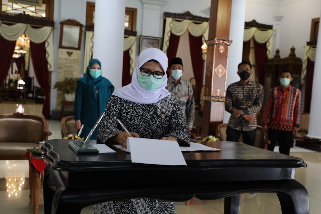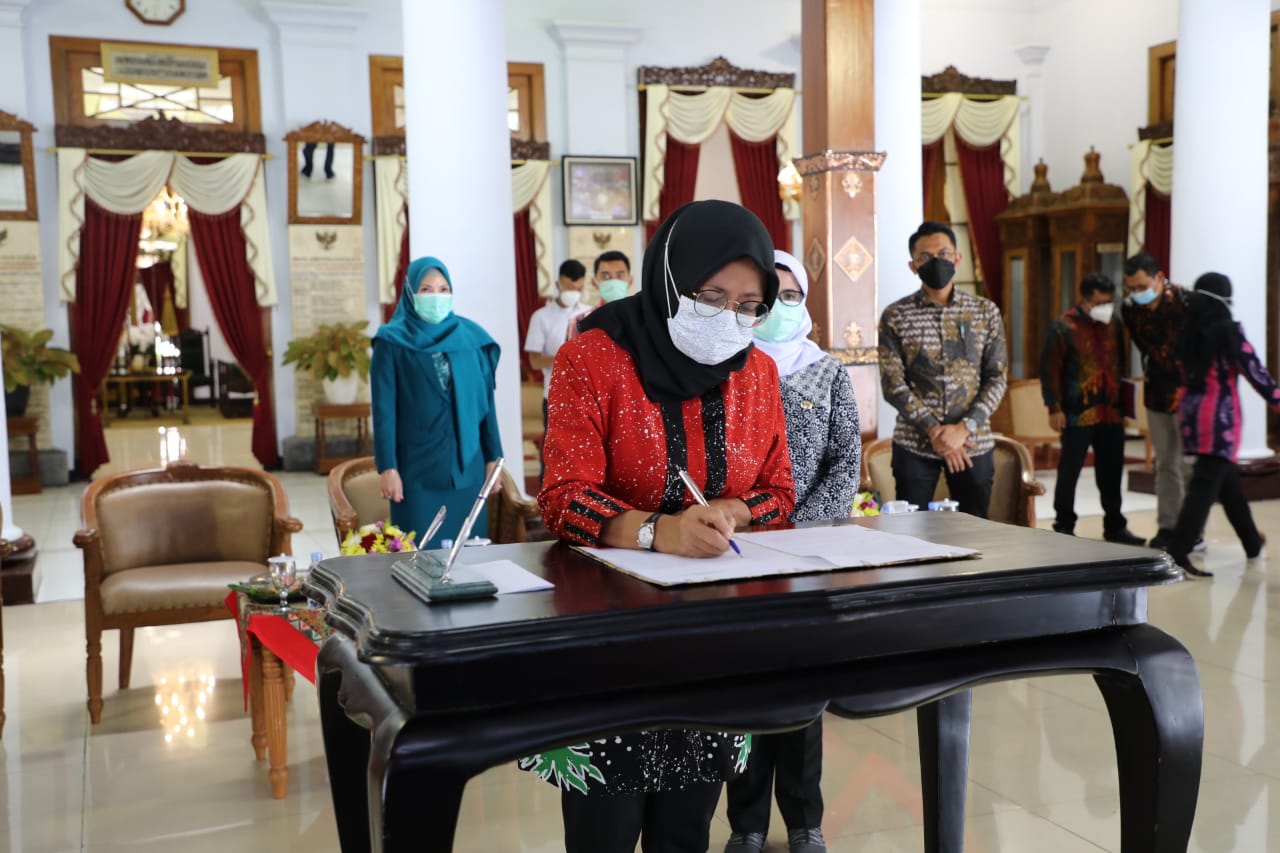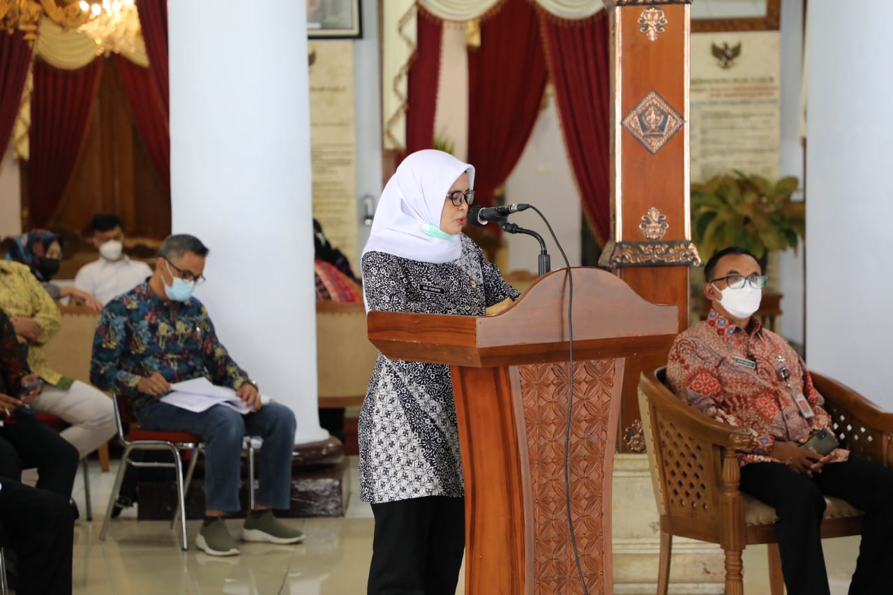 BLITAR KAB – Pemkab Blitar melaksanakan Konsultasi Publik Rancangan Awal Rencana Pembangunan Jangka Menengah Daerah (RANWAL-RPJMD) secara live streaming di Pendopo RHN, Jumat (12/3). Dipimpin langsung oleh Bupati Blitar dengan narasumber Dosen Fakultas Ilmu Administrasi Universitas Brawijaya, Andy Kurniawan SAP, MAP. Turut hadir PJ Sekda, Ketua Dekranasda, Ketua Tim Penggerak PKK dan lainnya.