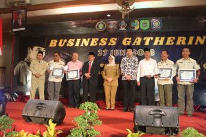 PEMKAB BLITAR – Bupati Blitar, Rini Syarifah didampingi Kepala Satpol PP Kabupaten Blitar menerima penghargaan dalam Bussiness and Custom Award kategori Penindakan Peredaran Rokok Ilegal terbanyak dari Kantor Pelayanan Bea Cukai Blitar. Kegiatan ini dilaksanakan pada Selasa (27/6) di hall Grand Mansion Blitar.