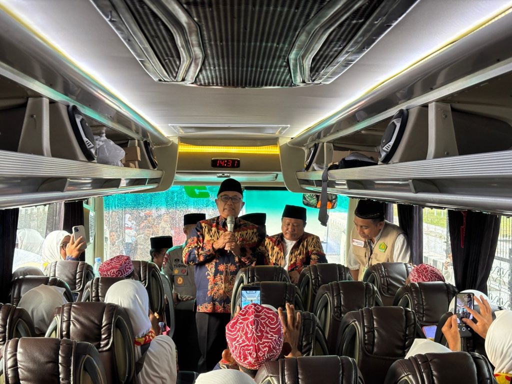 “Monggo yang muda bantulah yang tua. Yang sehat bantulah yang sakit. Jaga nama baik Indonesia, utamanya Jawa Timur dan Blitar melalui disiplin serta taat pada aturan tanah suci selama berhaji,” sambungnya.