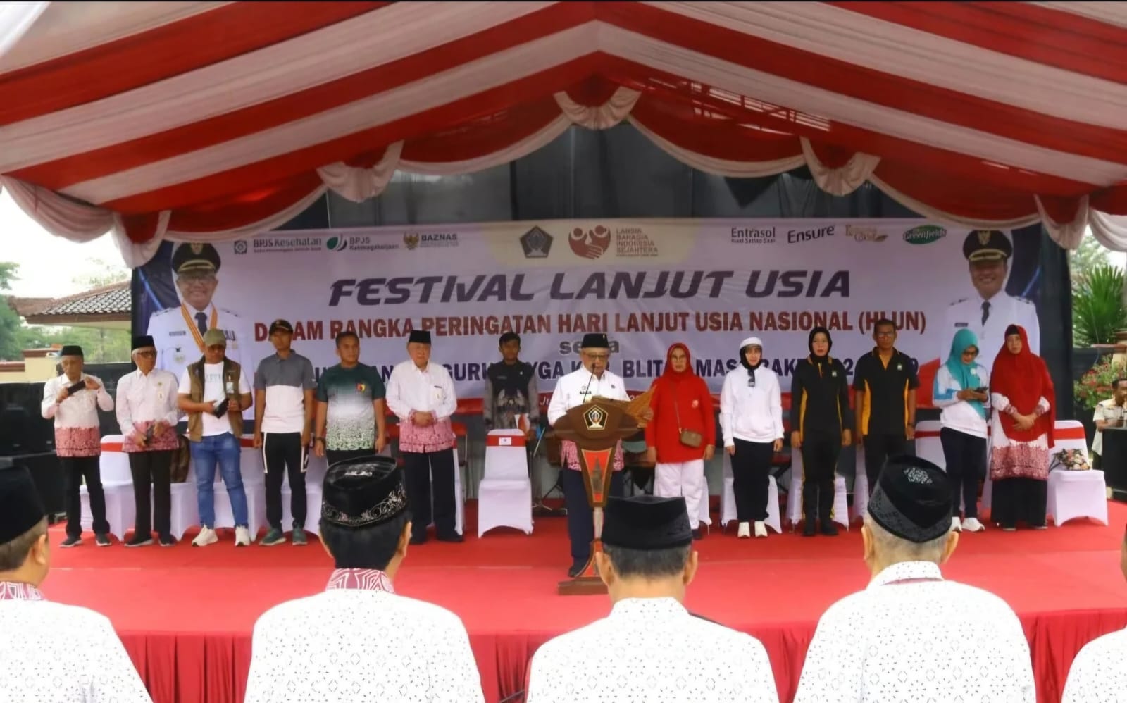 Pemkab Blitar – Pemerintah Kabupaten Blitar menggelar Festival Lanjut Usia yang berlangsung di Alun-alun Kanigoro dalam rangka memperingati Hari Lanjut Usia Nasional (HLUN) Tahun 2025, pada Jumat(20/06). Acara ini dihadiri langsung oleh Bupati Blitar, Drs. H. Rijanto, MM didampingi Forkopimda, OPD terkait, Ketua Penggerak PKK Hj. Ninik Rijanto serta Ketua Bidang I Pembinaan Karakter Keluarga TP PKK Kabupaten Blitar Ibu Arina Andriani Beky Herdihansah.