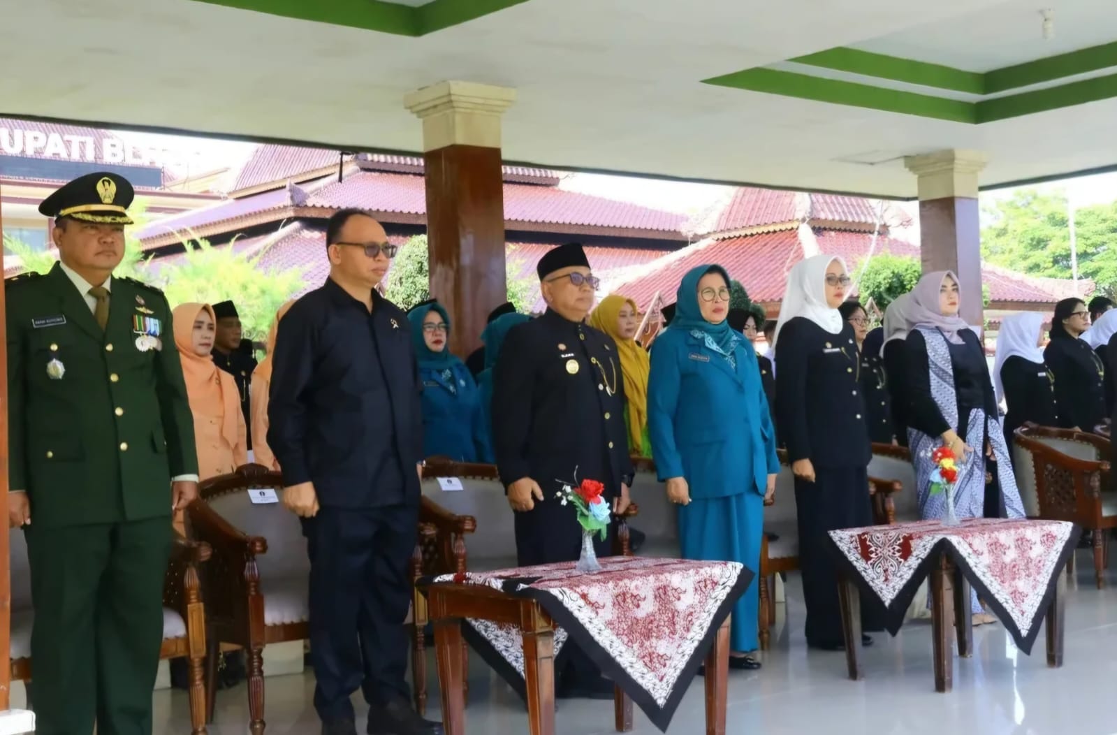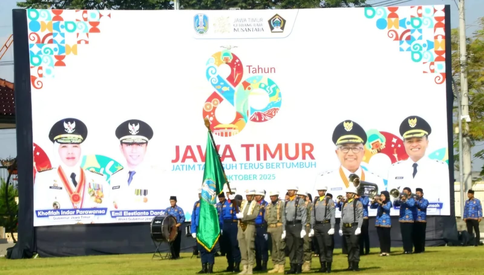 Pemkab Blitar – Pemerintah Kabupaten Blitar menggelar upacara dalam rangka peringatan Hari Jadi ke-80 Provinsi Jawa Timur dengan tema Jatim Tangguh Terus Bertumbuh. Upacara diikuti oleh ASN, pelajar, pegawai BUMD, Toga dan Tomas bertempat di Alon – Alon Kanigoro, Senin (13/10/2025).